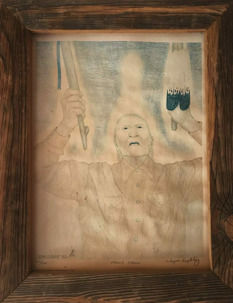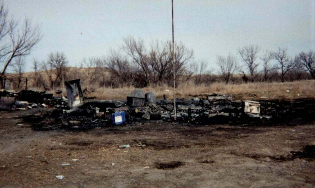 Chief Fools Crow's (Grandpa's) house was burned down during the 1973 Wonded Knee incident. Most likely burned down by the "Goon Squad" who tightly controlled the Pine Ridge Agency. They are seen in the movie Thunderheart.
