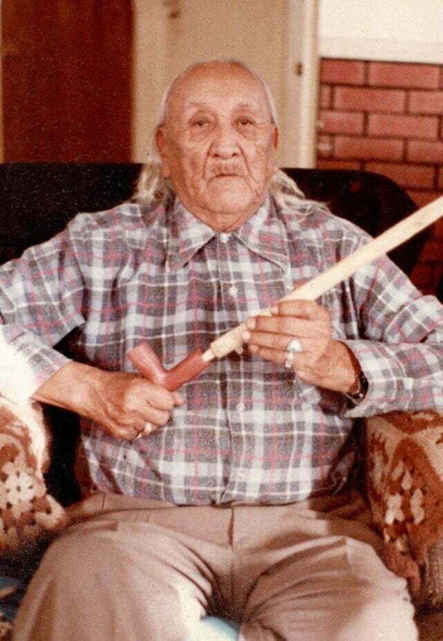 Chief Fools Crow annointing & blessing my Cannunpa (Pipe) and Larry Thompson's Pipe. Grandpa said, "If I had a son, I would want him to be just like Larry." Larry is Cherokee and African. His Grandmothe was a medicine woman.