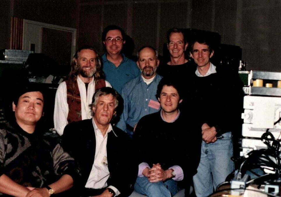 Michael Apted Director and James Horner Composer with Dik in the studio recording the score and special effects on the movie Thunderheart.