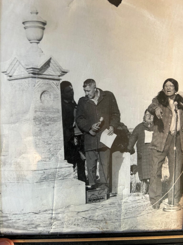 Looking at the picture, I am in front on the right side in the black shirt. The Pine Ridge Agency Oglala Tribal Chairman is across from me on the left. We all wore a Chiefs Bonnet in honor of Grandpa.