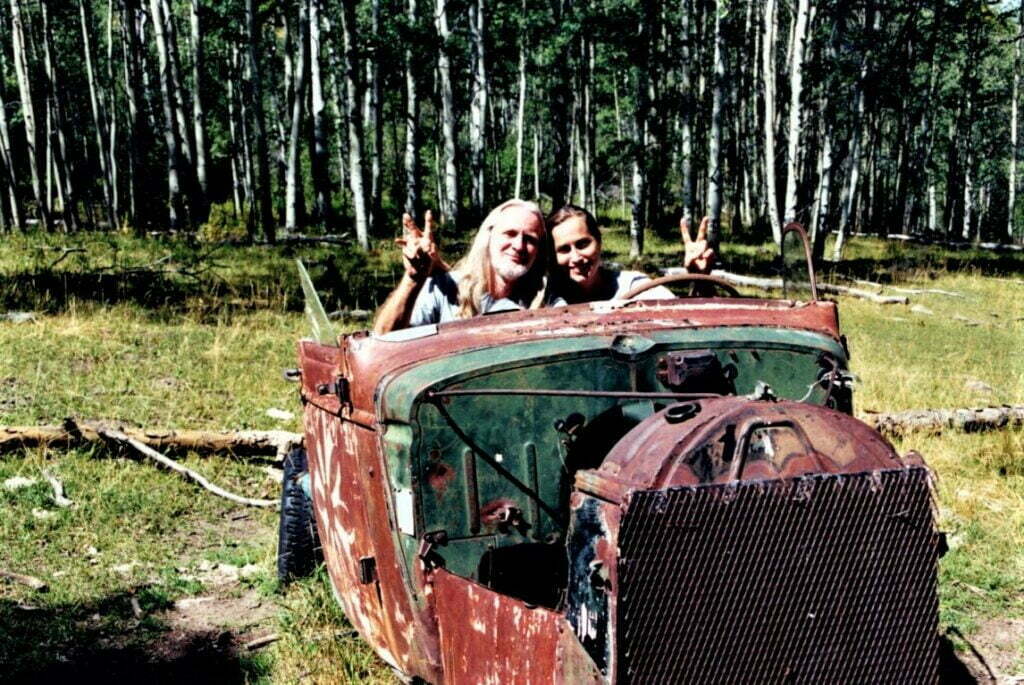 Special friend Dorie Cofer and Dik in an old abandon car on Harris Sherman's mountain land. Harris, a lawyer, represented the Hopi Nation and other Native tribes. He won his first supreme court argument 9 - 0!!